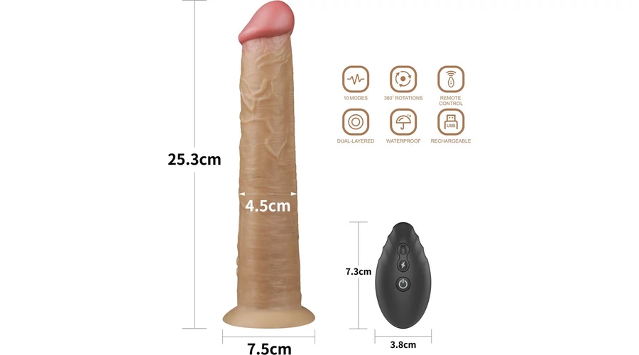 Lágy külső réteggel és kemény belső maggal rendelkező, testszövethez hasonló, bőrszerű tapintású anyagból készült, 10 rezgési funkcióval rendelkező, erezett felületű dildó, melynek hegye 360°-ban forog. A rezgések és forgások vezeték nélküli távirányítóval is szabályozhatóak. Tapadókorongja segítségével sík felületre rögzíthető.