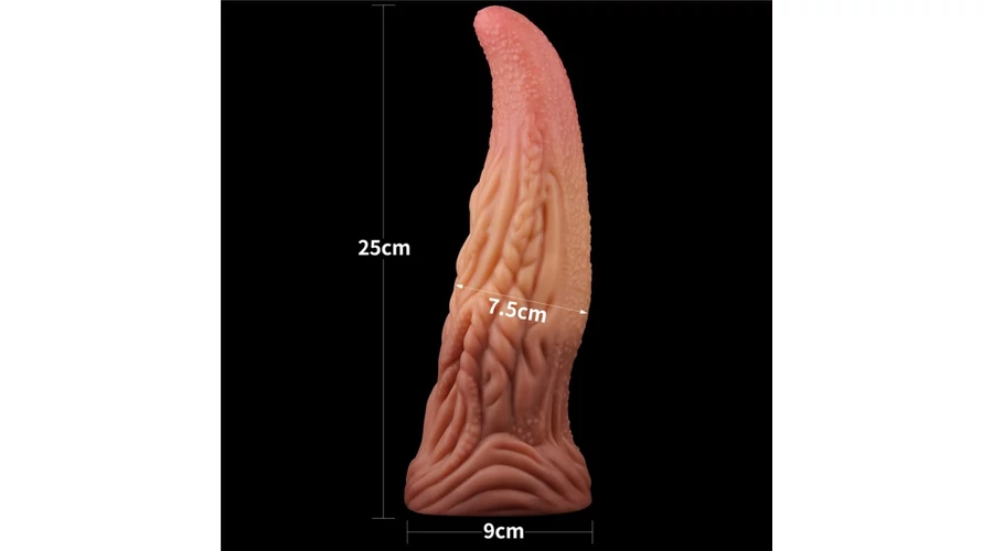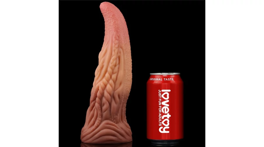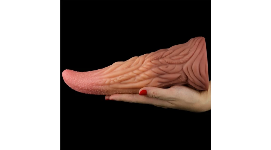 Egyedi, nyelv formájú, lágy külső réteggel és kemény belső maggal rendelkező, testszövethez hasonló, bőrszerű tapintású, motor nélküli, erezett felületű, hajlítható dildó. Tapadókorongja segítségével sík felületre rögzíthető.