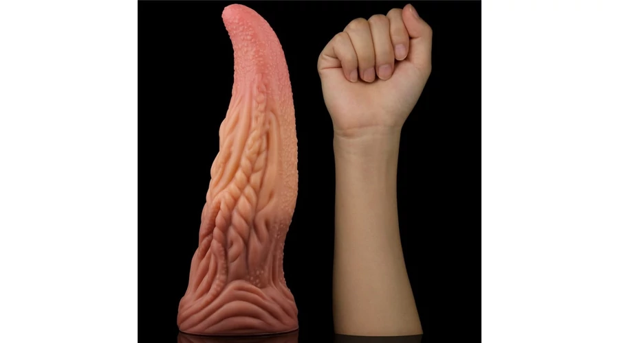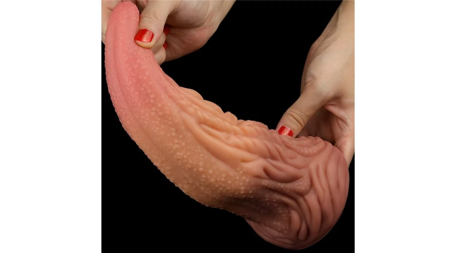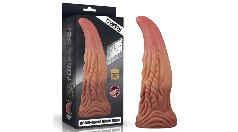 10'' Dual layered Platinum Silicone Tongue dildó herékkel és tapadókoronggal