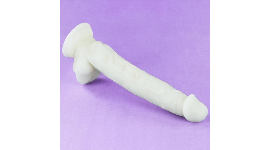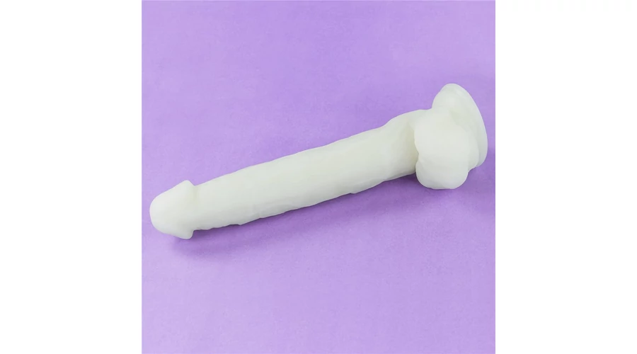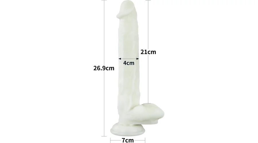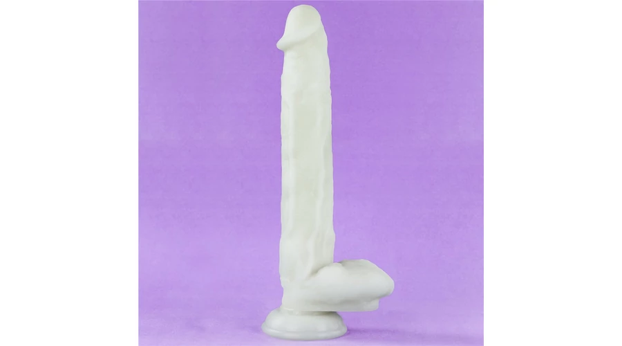 felületű, herékkel kiegészített dildó. Ajánlott napközben fénynek kitenni