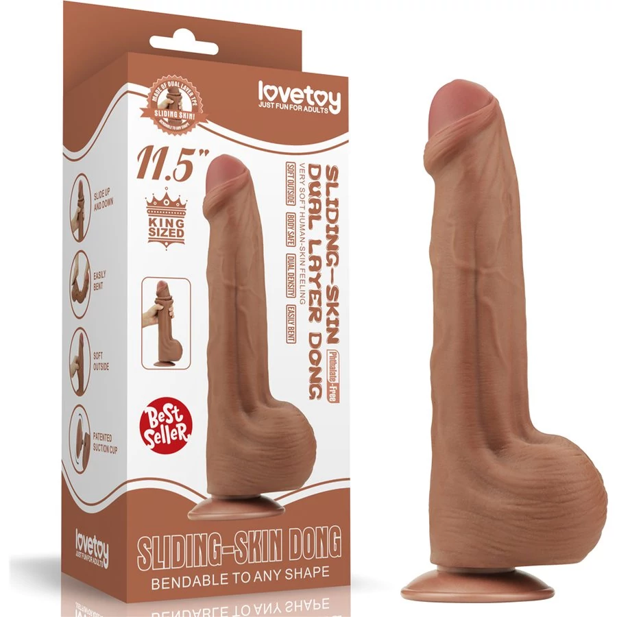 11.5'' King Sized Sliding Skin Dual Layer Dong Brown dildó