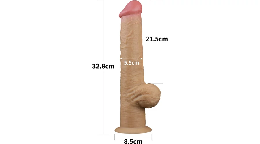 Pénisz formájú, lágy külső réteggel és kemény belső maggal rendelkező, testszövethez hasonló, bőrszerű tapintású anyagból készült, motor nélküli, erezett felületű, herékkel kiegészített, hajlítható, dupla rétegű, egyedülálló, kényelmes fogantyús kialakítással ellátott dildó. Tapadókorongja segítségével sík felületre rögzíthető. A fogantyú hossza 5 cm.