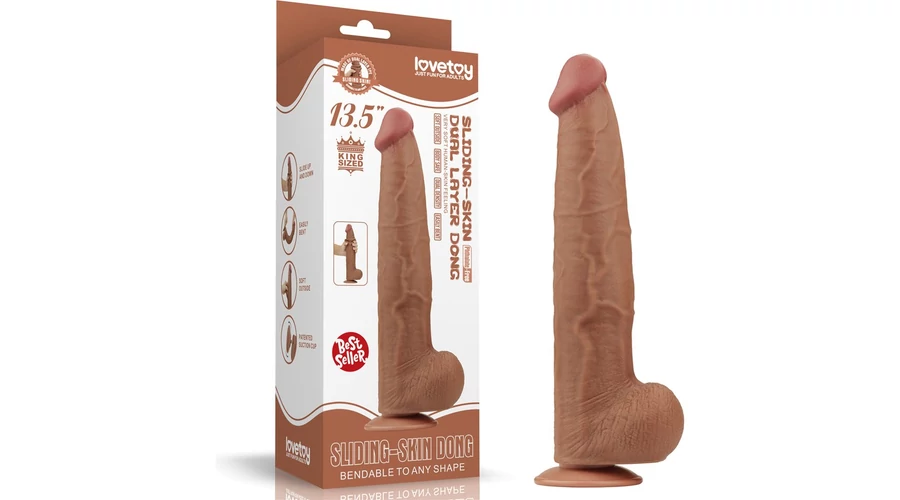 13.5'' King Sized Sliding Skin Dual Layer Dong Brown dildó herékkel