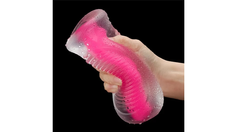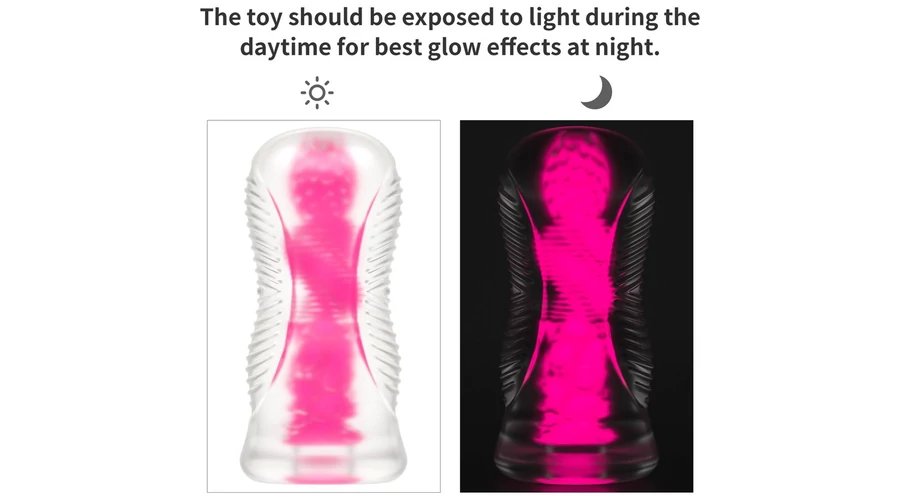 bőrszerű tapintású, sötétben rózsaszínben világító, egyéni erotikus játék.