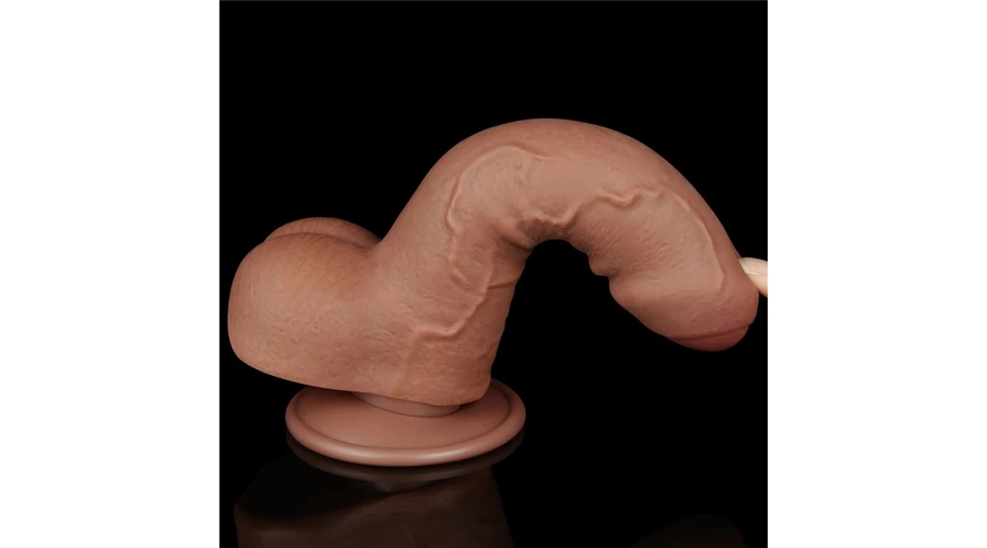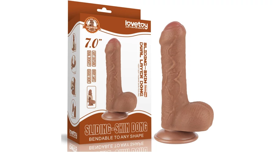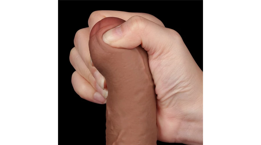 7'' Sliding Skin Dual Layer Dong Brown dildó herékkel és csúsztatható bőrrel
