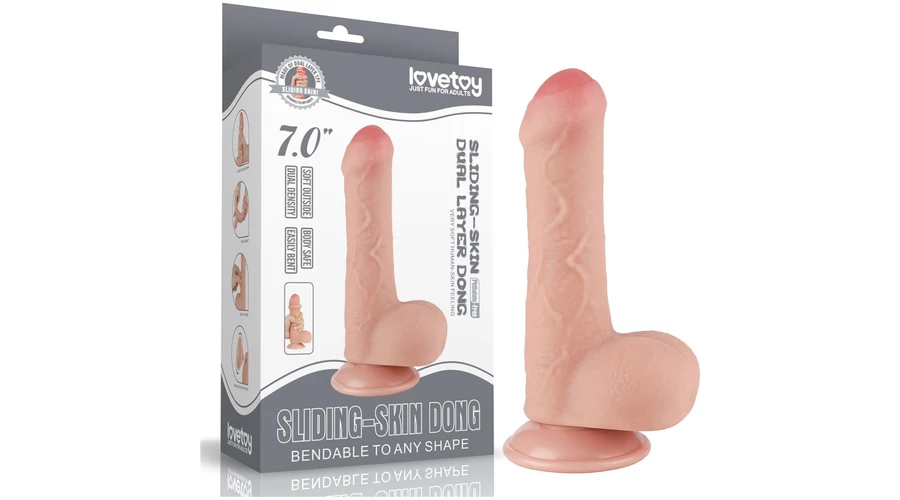 7'' Sliding Skin Dual Layer Dong Flesh dildó herékkel