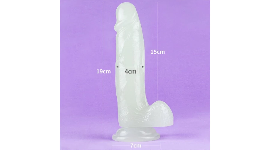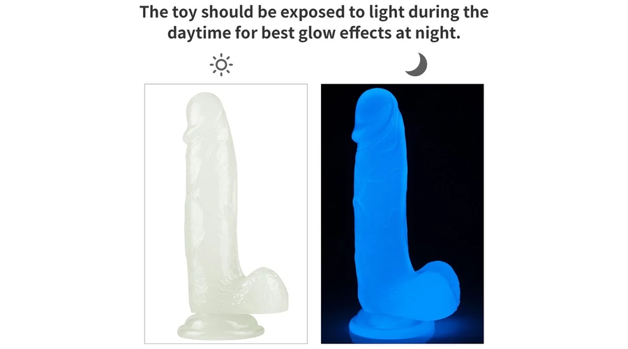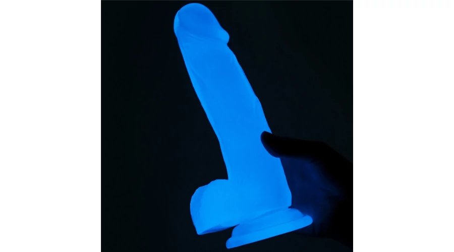 Pénisz formájú, kétrétegű, bőrszerű tapintású anyagból készült, flexibilis, sötétben kék színben világító, motor nélküli, erezett felületű, herékkel kiegészített dildó. Tapadókorongja segítségével sík felületre rögzíthető. Ajánlott napközben fénynek kitenni a legjobb hatás érdekében.
