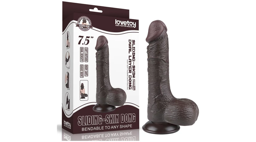 7.5'' Sliding Skin Dual Layer Dong Black III dildó herékkel és csúsztatható bőrrel