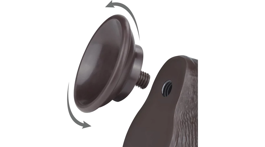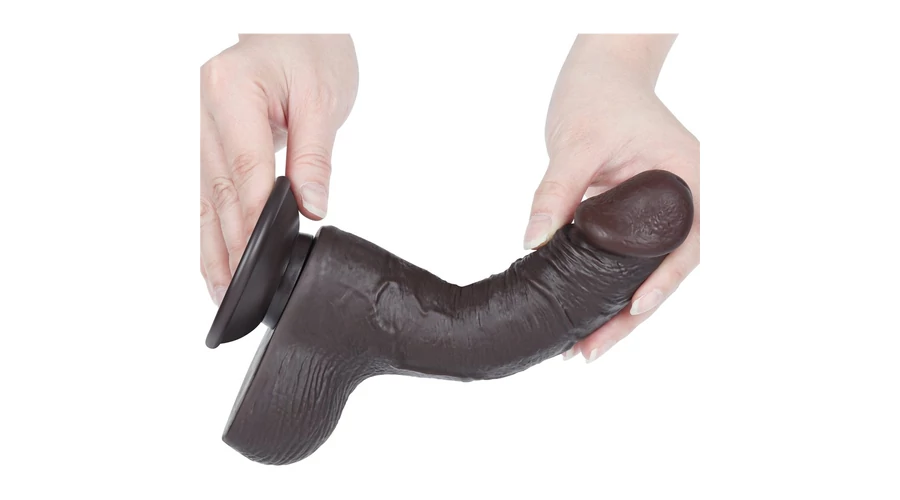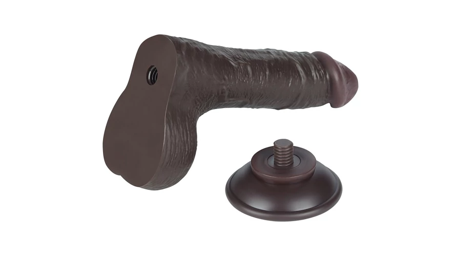 Kézzel készített, pénisz formájú, lágy külső réteggel és kemény belső maggal rendelkező, testszövethez hasonló, bőrszerű tapintású anyagból készült, motor nélküli, erezett felületű, herékkel kiegészített, hajlítható, csúsztatható bőrrel ellátott dildó. Tapadókorongja segítségével sík felületre rögzíthető, amely fel- és lecsavarható.