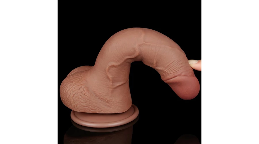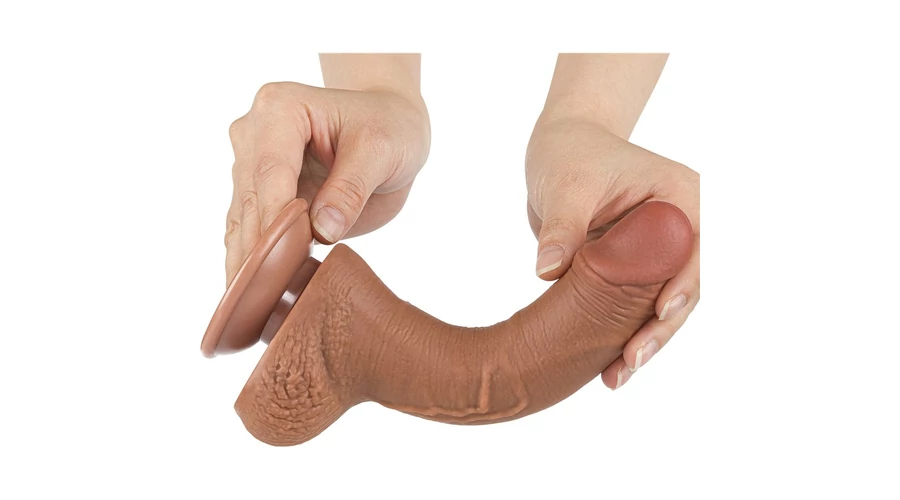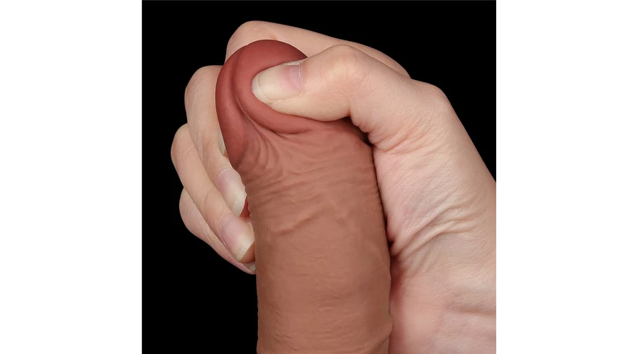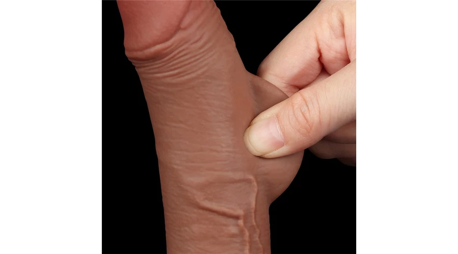 7.5'' Sliding Skin Dual Layer Dong Brown dildó herékkel és csúsztatható bőrrel