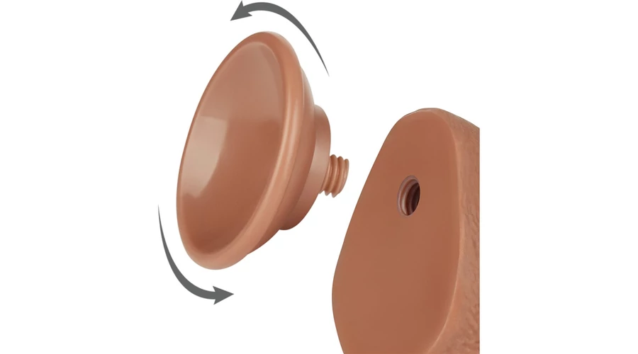 Kézzel készített, pénisz formájú, lágy külső réteggel és kemény belső maggal rendelkező, testszövethez hasonló, bőrszerű tapintású anyagból készült, motor nélküli, erezett felületű, herékkel kiegészített, hajlítható, csúsztatható bőrrel ellátott dildó. Tapadókorongja segítségével sík felületre rögzíthető, amely fel- és lecsavarható.
