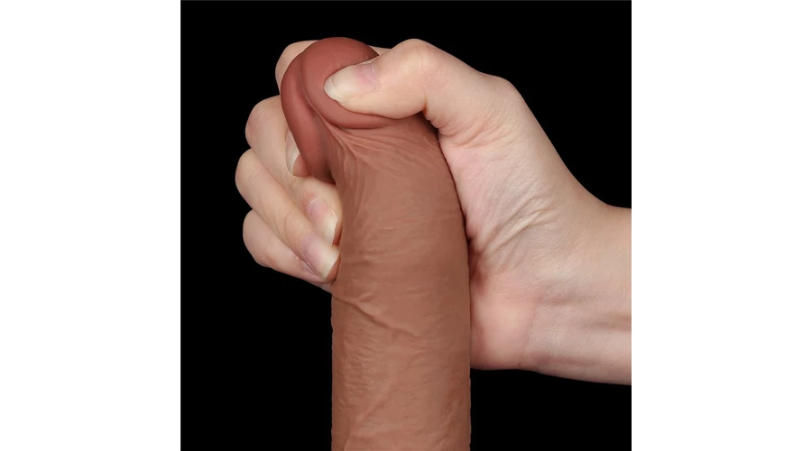 7.5'' Sliding Skin Dual Layer Dong Brown III dildó herékkel és csúsztatható bőrrel