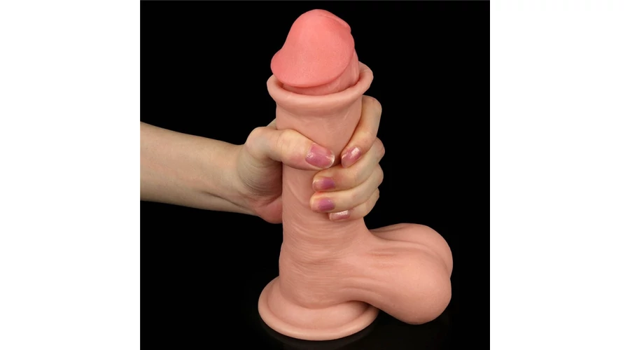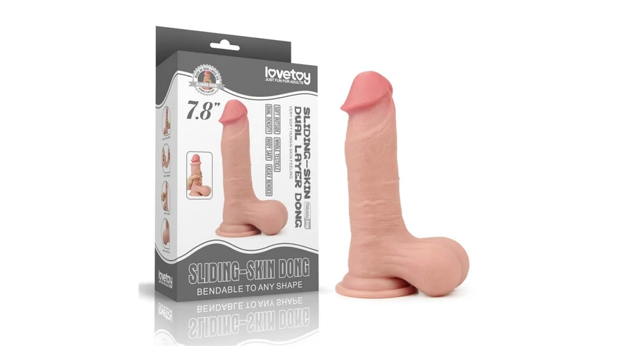 7.8'' Sliding Skin Dual Layer Dong - Whole Testicle erezett felületű dildó herékkel és tapadókoronggal