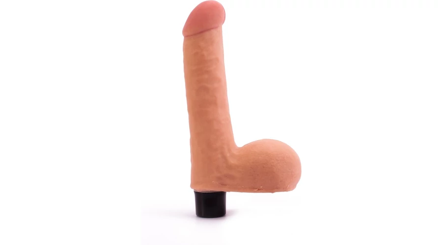 Realisztikus kialakítású, pénisz formájú, rugalmas, testszövethez hasonló, bőrszerű tapintású anyagból készült, 10 rezgési funkcióval rendelkező, erezett felületű, herékkel kiegészített dildó.