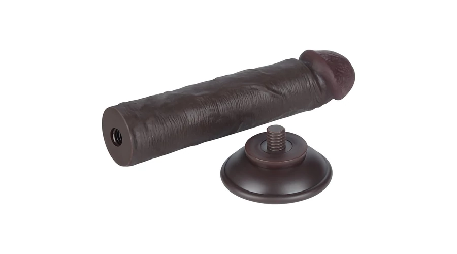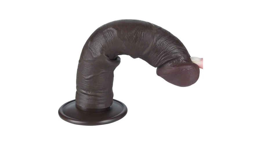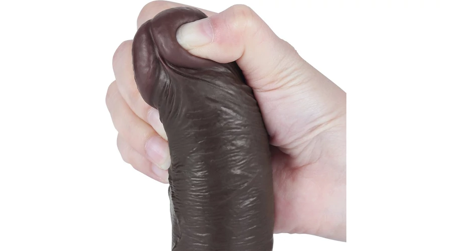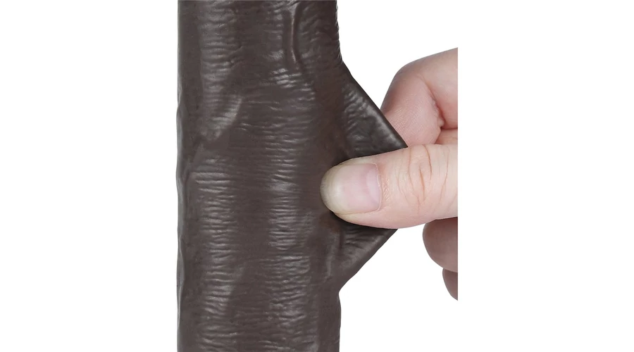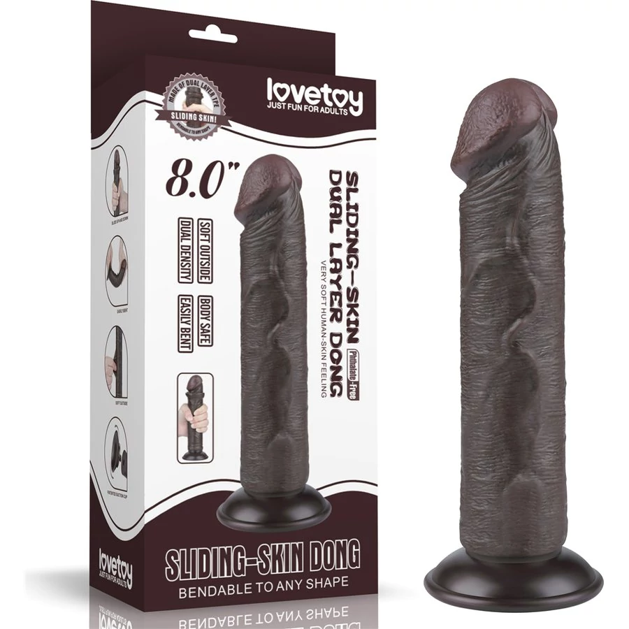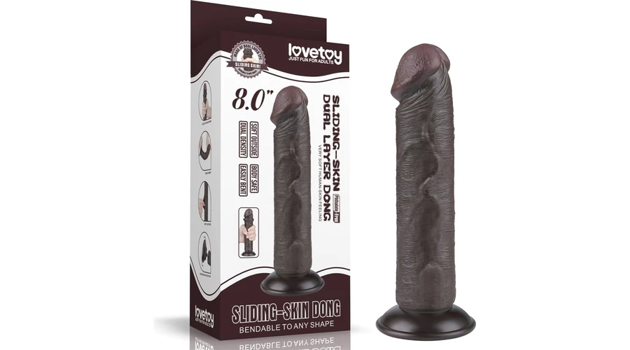 8'' Sliding Skin Dual Layer Dong Black II dildó herékkel és csúsztatható bőrrel
