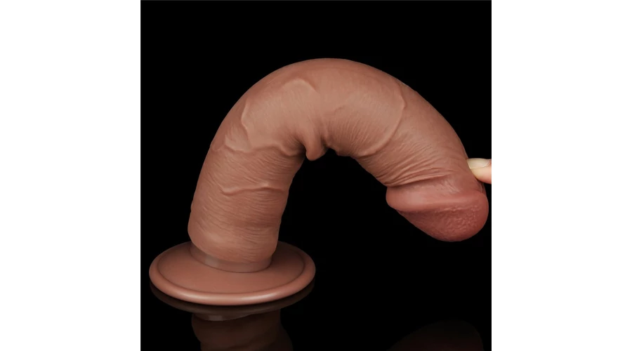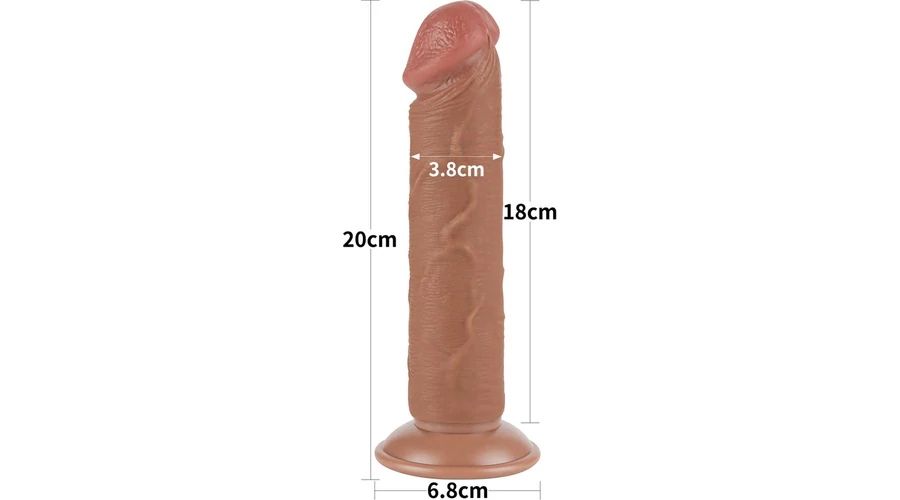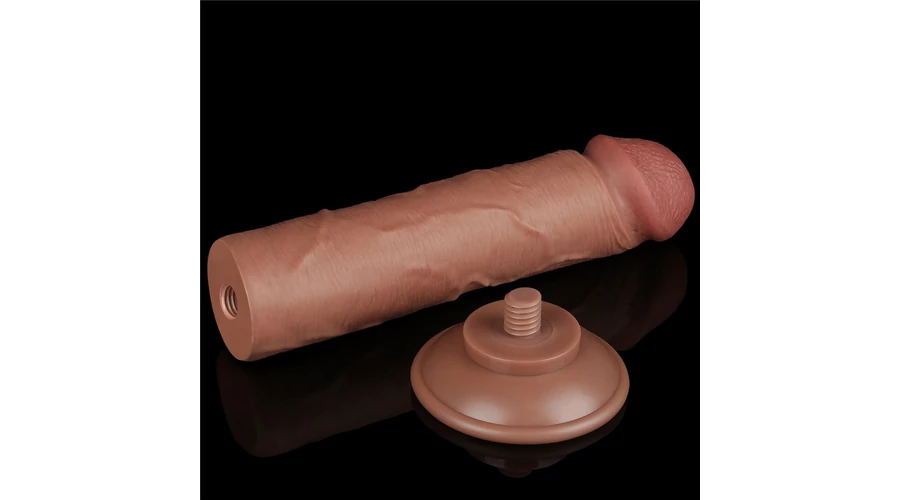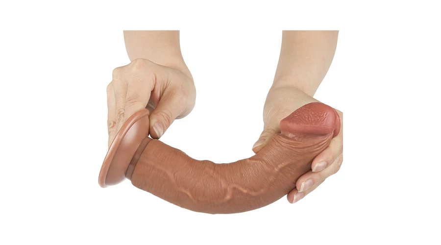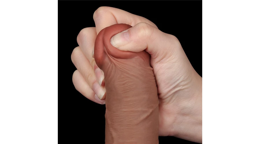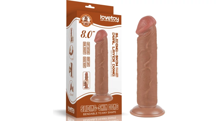 8'' Sliding Skin Dual Layer Dong Brown II dildó herékkel és csúsztatható bőrrel