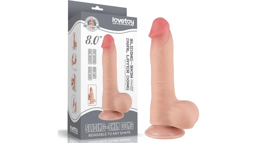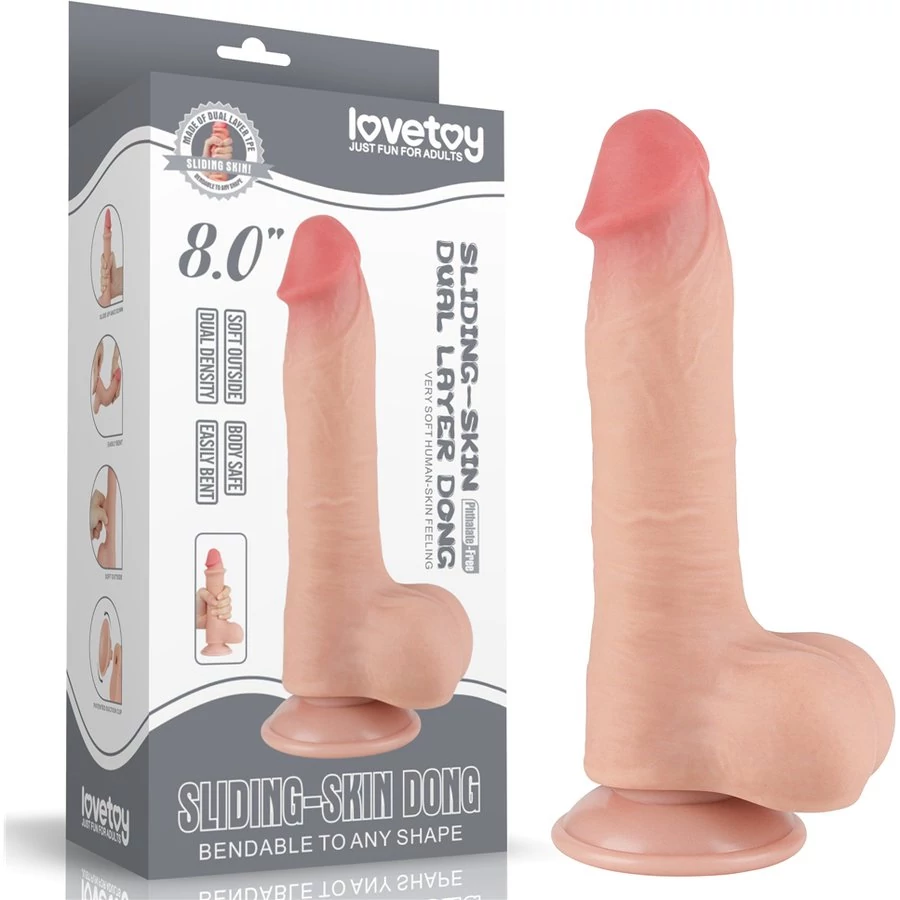 8'' Sliding Skin Dual Layer Dong Flesh I dildó herékkel és csúsztatható bőrrel