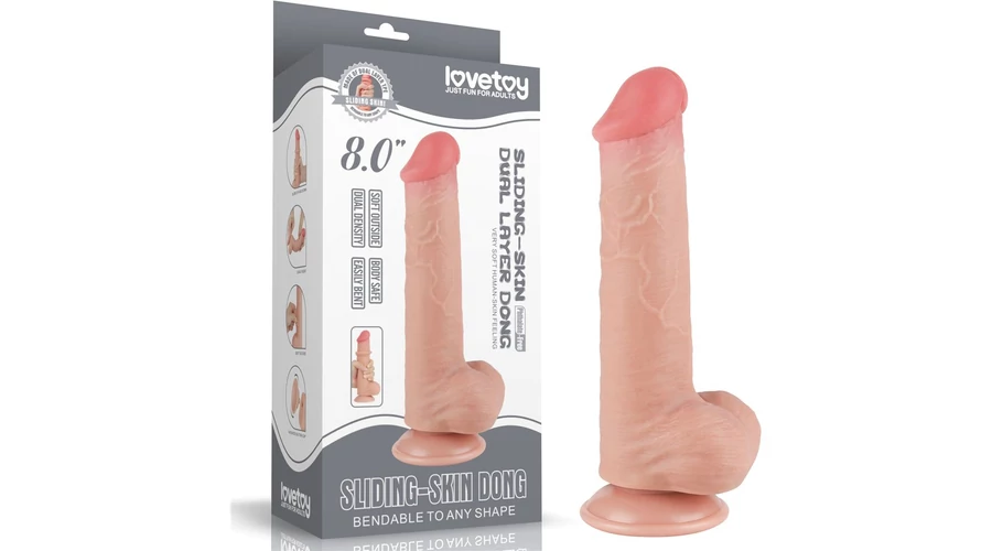 8'' Sliding Skin Dual Layer Dong Flesh III dildó herékkel és csúsztatható bőrrel