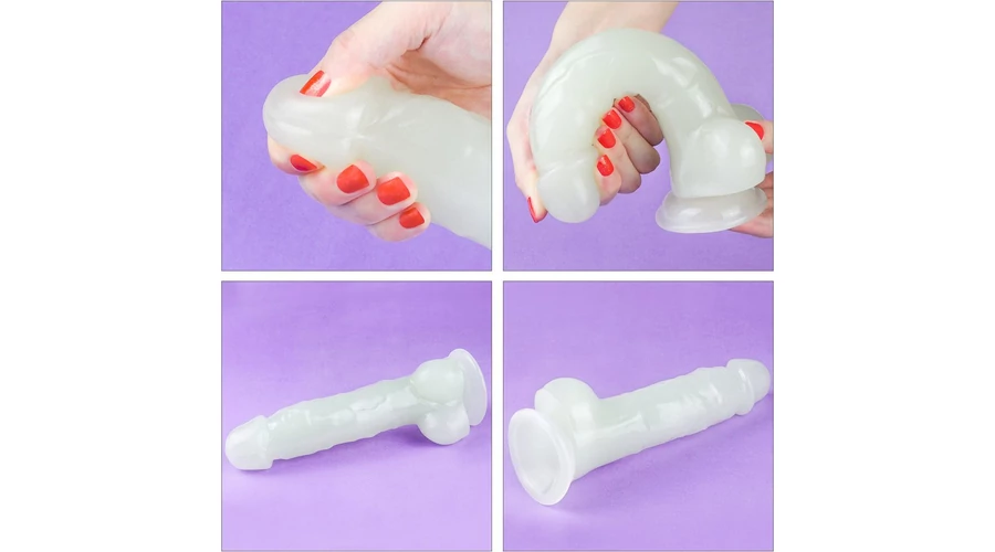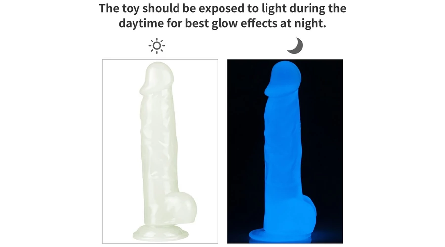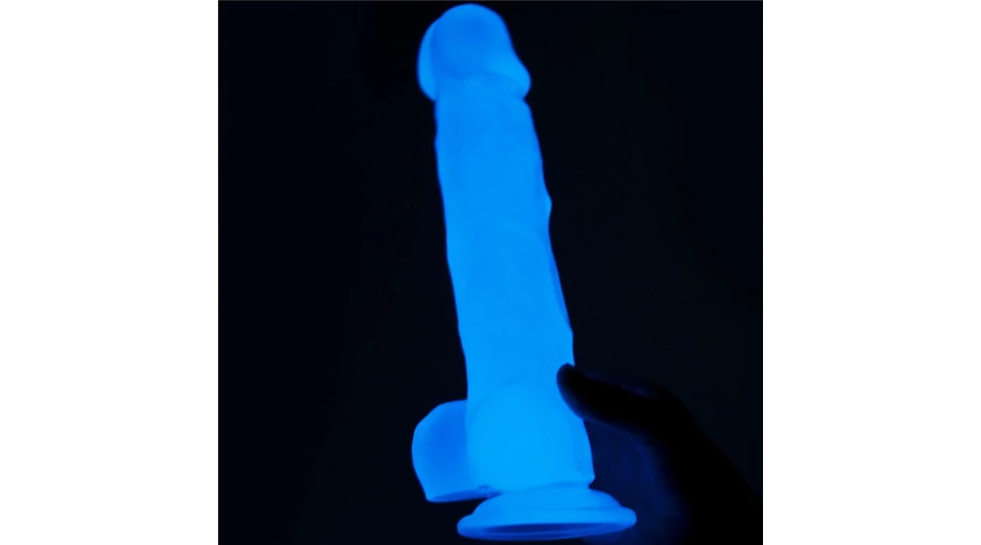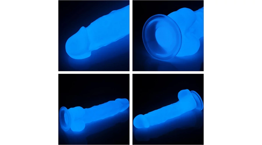Pénisz formájú, kétrétegű, bőrszerű tapintású anyagból készült, flexibilis, sötétben kék színben világító, motor nélküli, erezett felületű, herékkel kiegészített dildó. Tapadókorongja segítségével sík felületre rögzíthető. Ajánlott napközben fénynek kitenni a legjobb hatás érdekében.