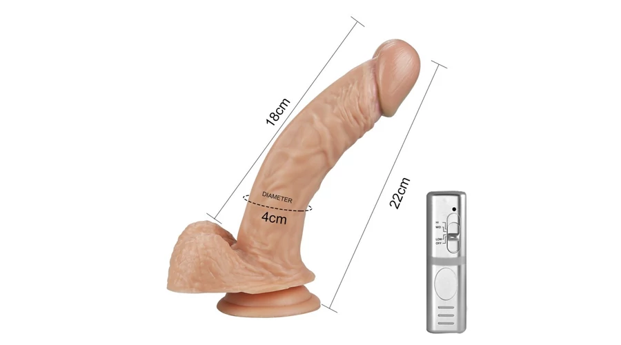 Realisztikusan kialakított, pénisz formájú, testszövethez hasonló, bőrszerű tapintású anyagból készült, 3 rezgési funkcióval rendelkező, vezetékes távirányítóval szabályozható, erezett felületű, herékkel kiegészített, hajlítható vibrátor. Tapadókorongja segítségével sík felületre rögzíthető.