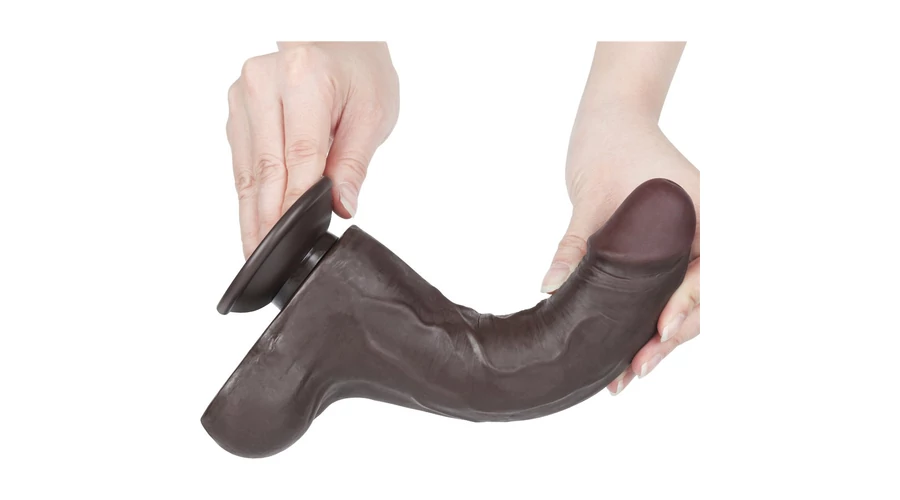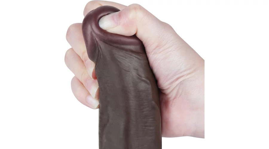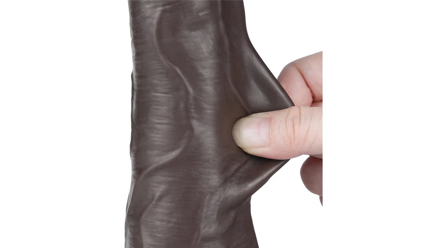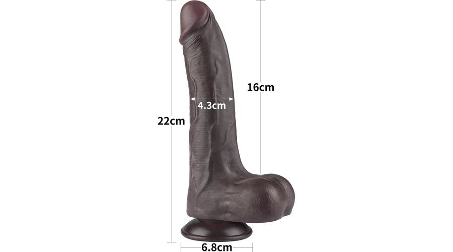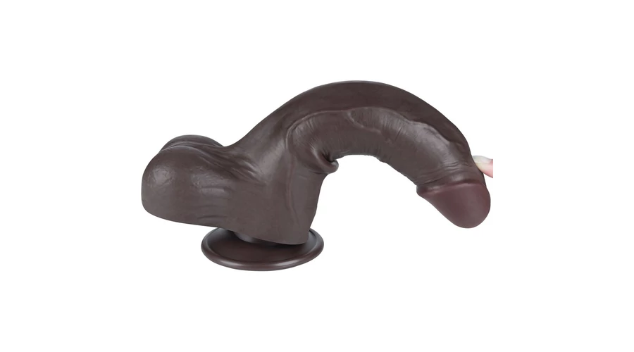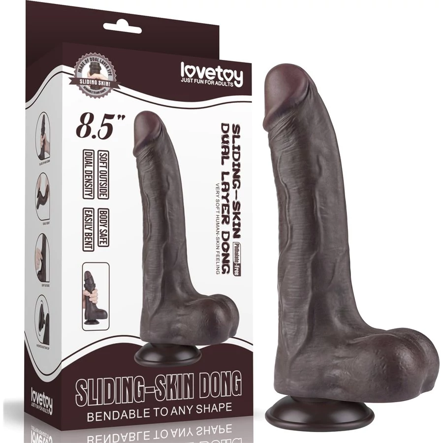 8.5'' Sliding Skin Dual Layer Dong Black II dildó herékkel és csúsztatható bőrrel