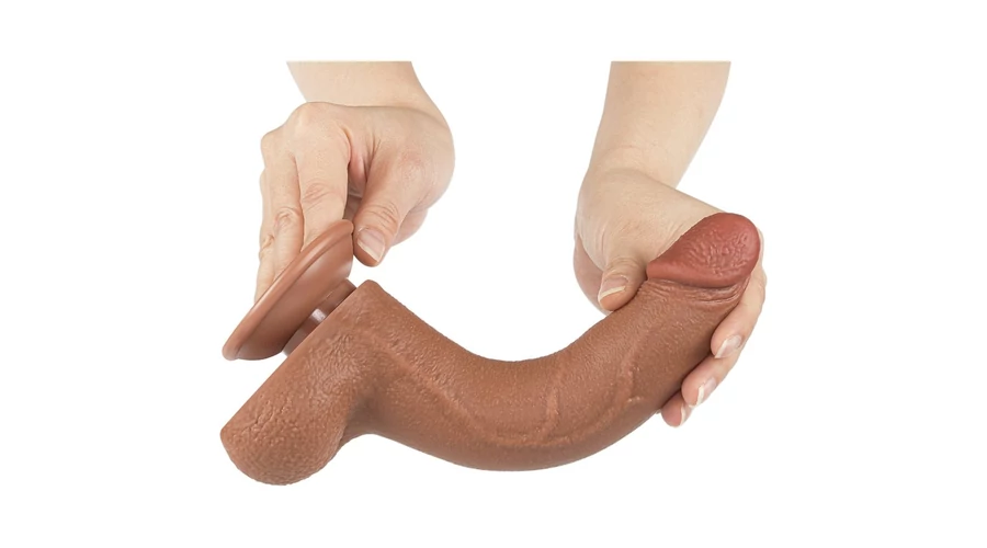 8.5'' Sliding Skin Dual Layer Dong Brown I dildó herékkel és csúsztatható bőrrel