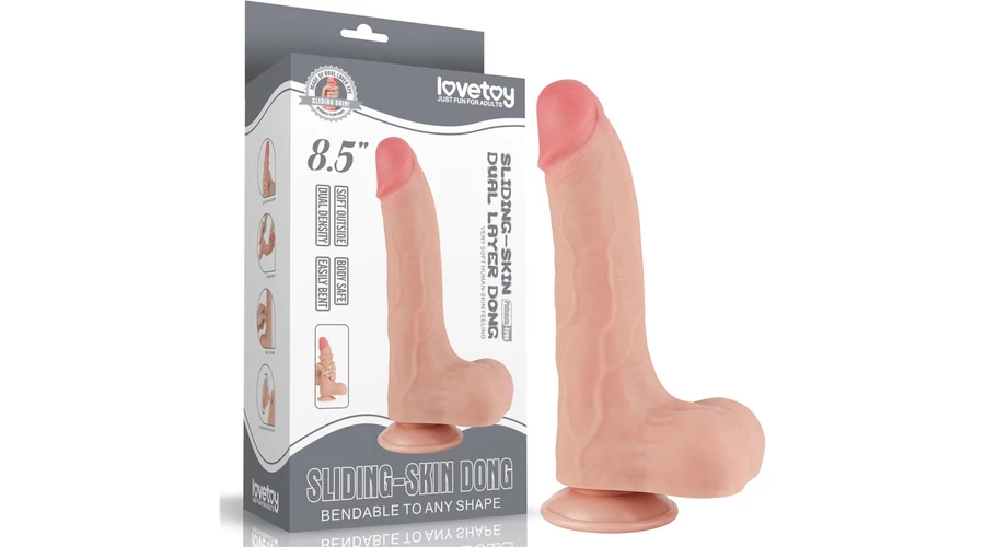 8.5'' Sliding Skin Dual Layer Dong Flesh II dildó herékkel és csúsztatható bőrrel