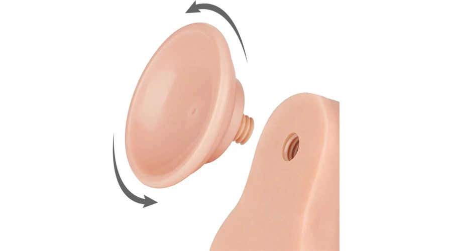 Kézzel készített, pénisz formájú, lágy külső réteggel és kemény belső maggal rendelkező, testszövethez hasonló, bőrszerű tapintású anyagból készült, motor nélküli, erezett felületű, herékkel kiegészített, hajlítható, csúsztatható bőrrel ellátott dildó. Tapadókorongja segítségével sík felületre rögzíthető, amely fel- és lecsavarható.