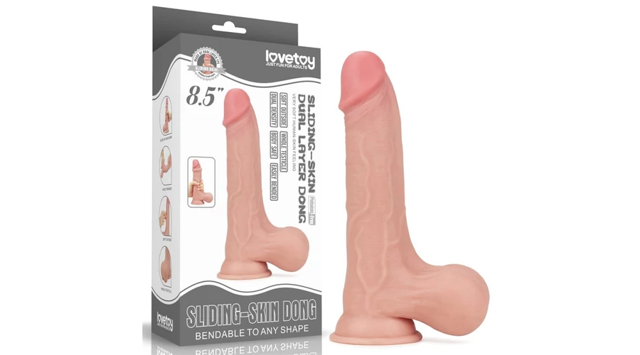 8.5'' Sliding Skin Dual Layer Dong - Whole Testicle dildó herékkel és tapadókoronggal