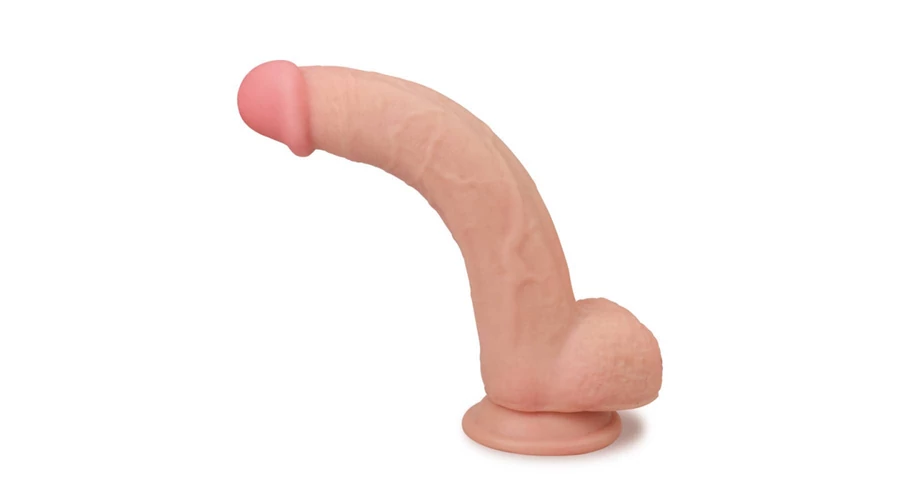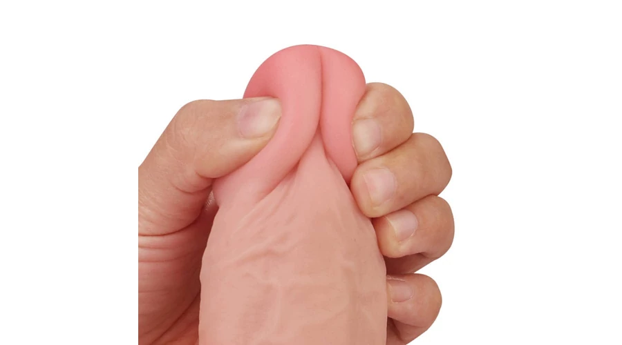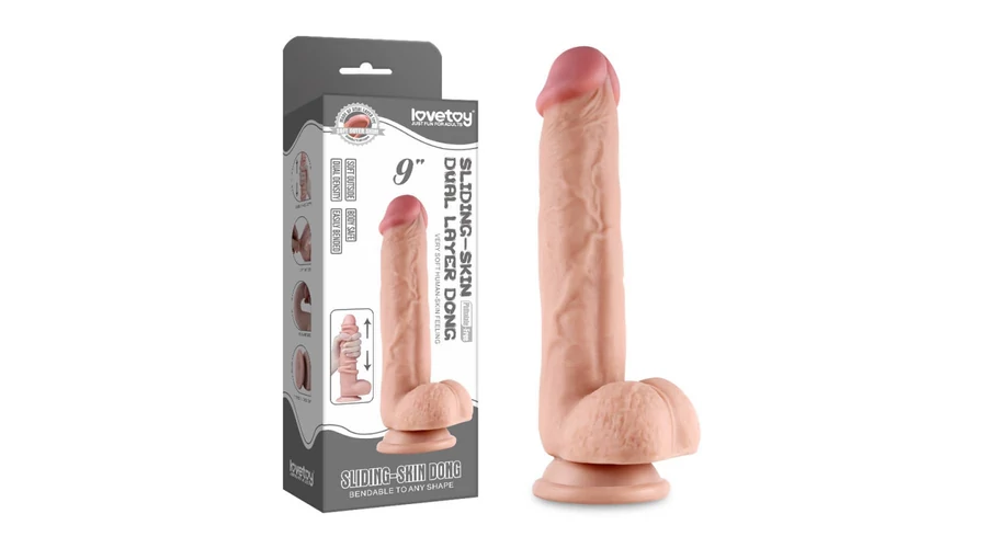 9'' Sliding Skin Dual Layer Dong 2 erezett dildó herékkel és tapadókoronggal