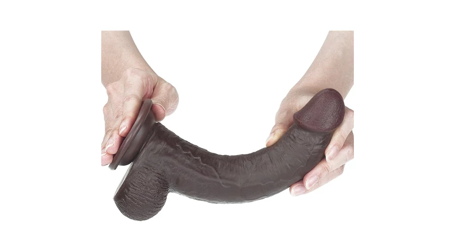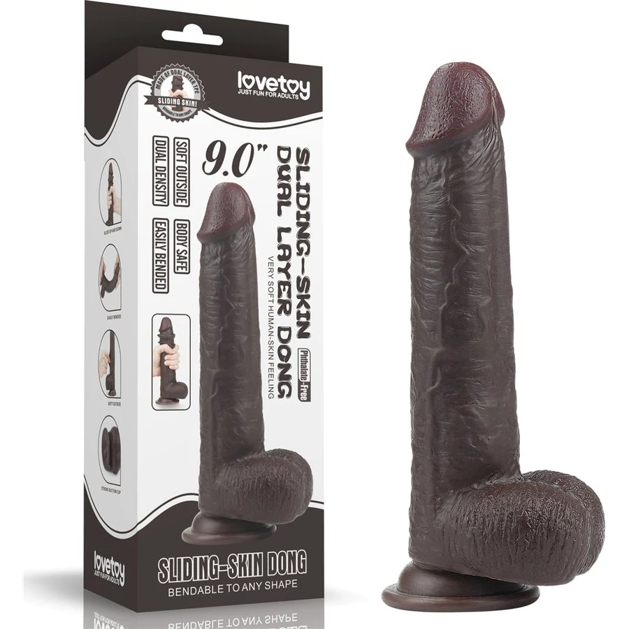 9'' Sliding Skin Dual Layer Dong Brown dildó herékkel