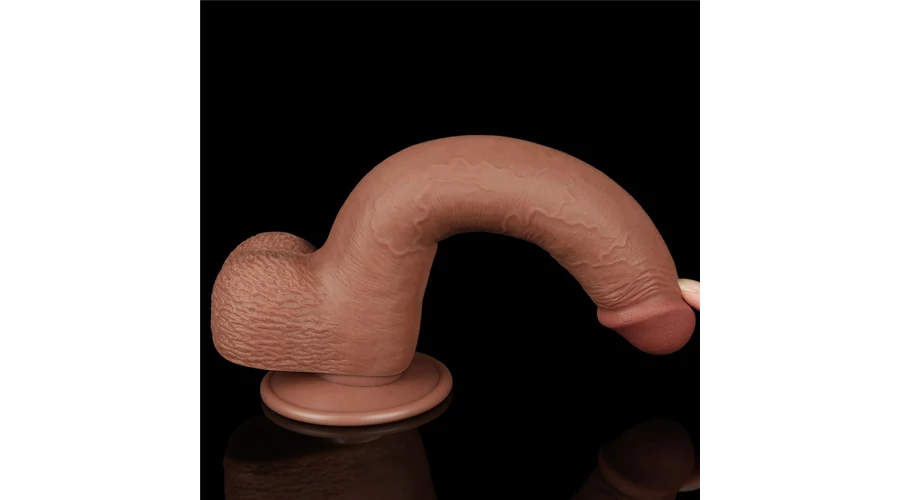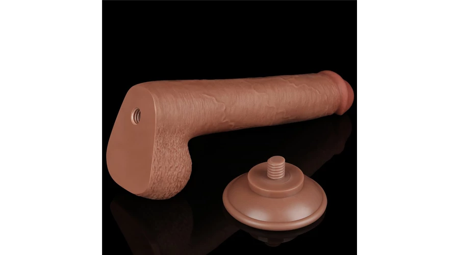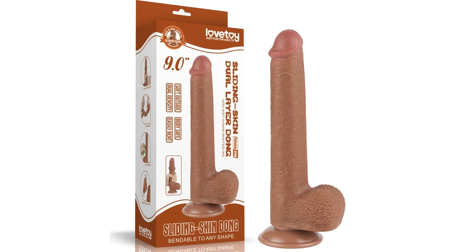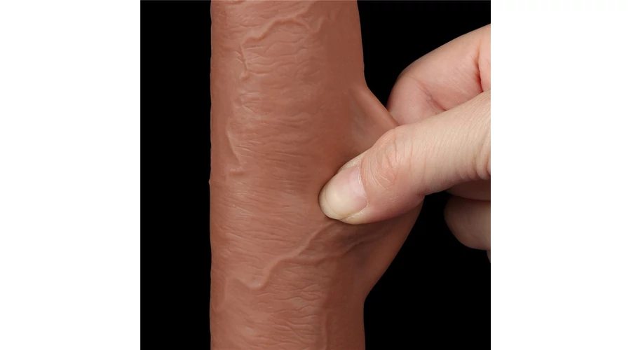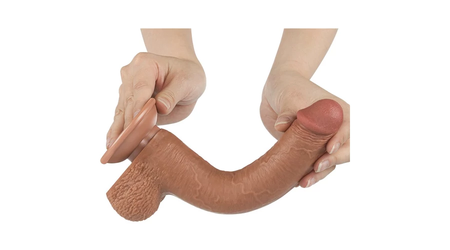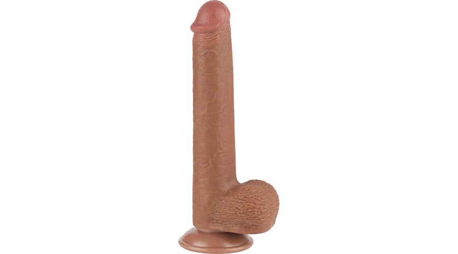 9'' Sliding Skin Dual Layer Dong Brown dildó herékkel és csúsztatható bőrrel