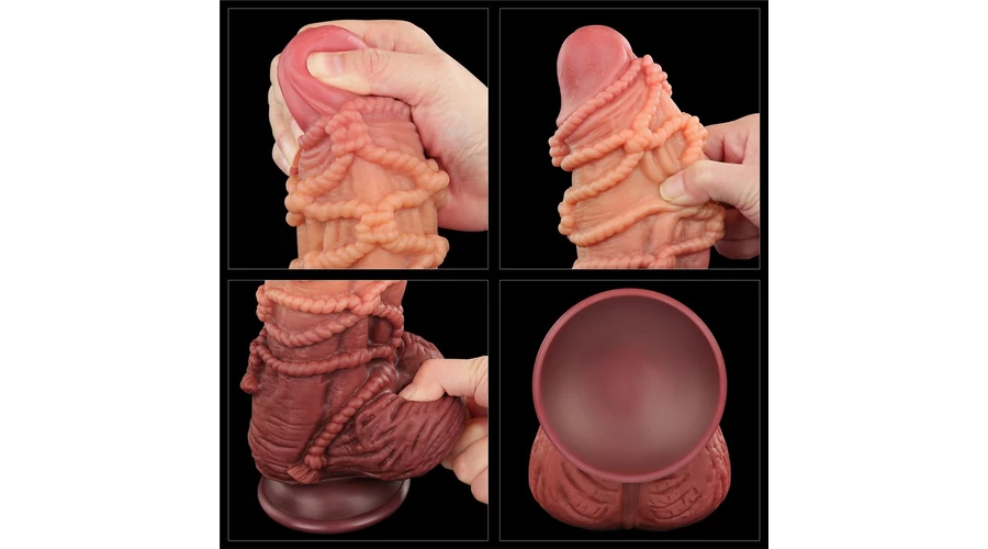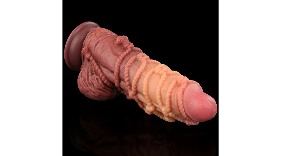 9.5'' Dual layered Platinum Silicone Cock with Rope dildó herékkel