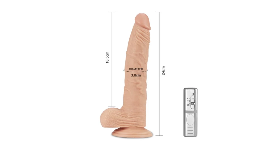 Realisztikusan kialakított, pénisz formájú, testszövethez hasonló, bőrszerű tapintású anyagból készült, 3 rezgési funkcióval rendelkező, vezetékes távirányítóval szabályozható, erezett felületű, herékkel kiegészített, hajlítható vibrátor. Tapadókorongja segítségével sík felületre rögzíthető.