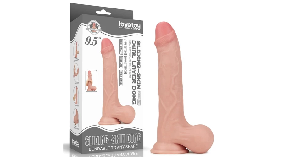 9.5'' Sliding Skin Dual Layer Dong - Whole Testicle dildó herékkel és tapadókoronggal