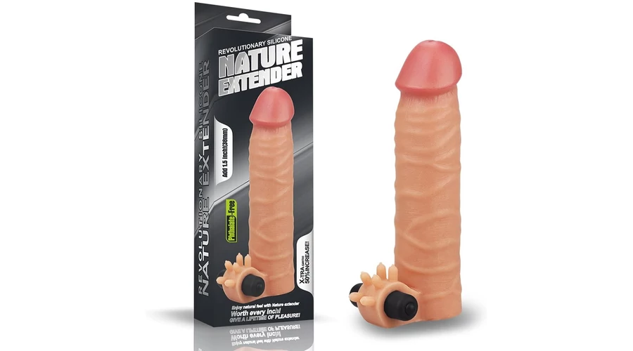 Add 1.5" Vibrating Silicone Extender erezett felületű péniszköpeny