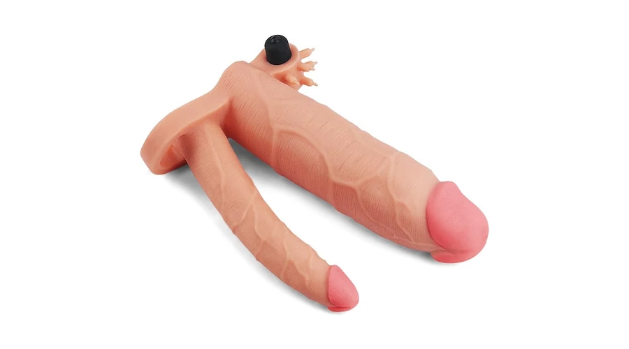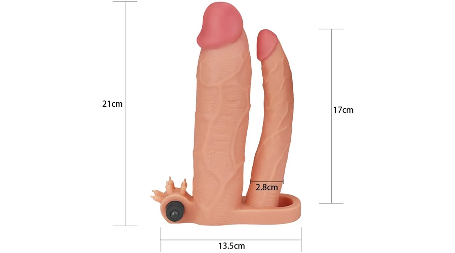 Add 3" Vibrating Double Penis Sleeve kétágú dildós péniszköpeny