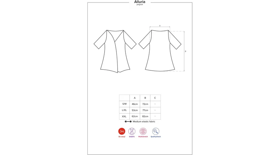 Elegáns, átlátszó, csipkével díszített köntös, fényes szatén övvel, fekete tangával.