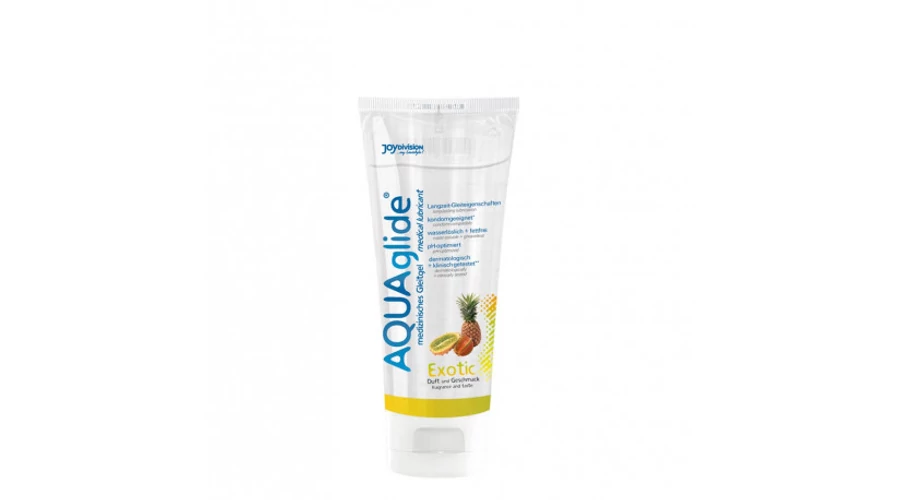 100ml-es kiszerelés. AQUAglide - Vízbázisú síkosító gél optimális síkosító hatással, exotikus, gyümölcsös ízzel és illattal! Óvszerrel is használható, vízben oldódó és zsírmentes. Bőrgyógyászatilag és klinikailag vizsgált termék.