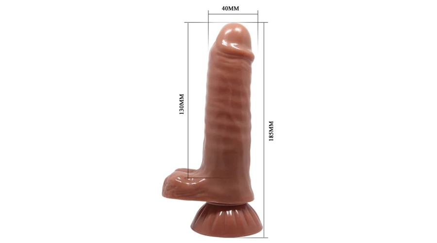 Rugalmas, pénisz formájú, testszövethez hasonló, bőrszerű tapintású anyagból készült, motor nélküli, erezett felületű, herékkel kiegészített dildó, amely kiválóan utánozza a a bőr természetes mozgását. Kialakításának köszönhetően a g-pont stimulálására, de akár anális behatolásra is alkalmas. Tapadókorongja segítségével sík felületre rögzíthető.