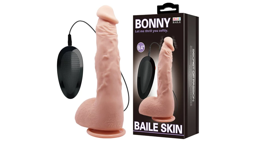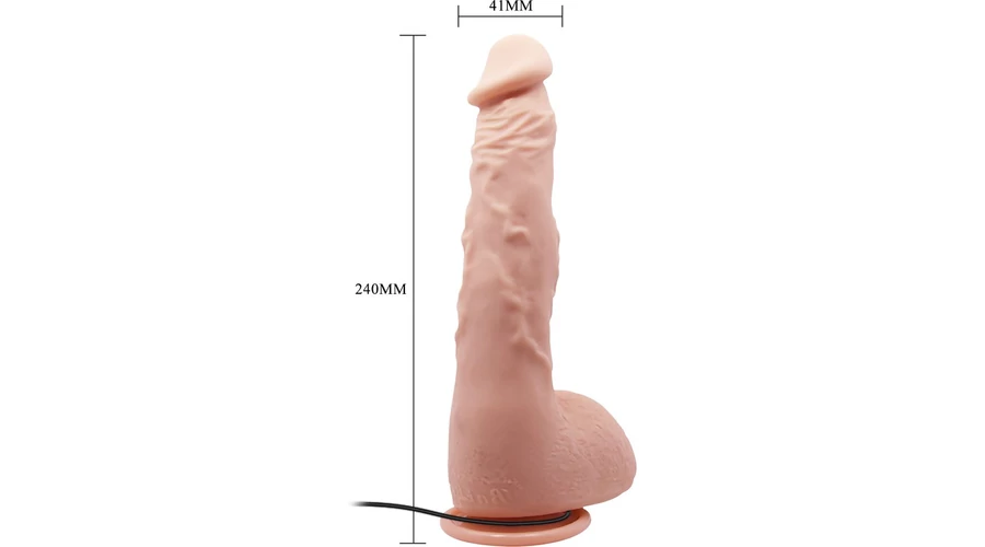 Realisztikusan kialakított, pénisz formájú, testszövethez hasonló, bőrszerű tapintású anyagból készült, állítható rezgési funkcióval rendelkező, vezetékes távirányítóval szabályozható, erezett felületű, herékkel kiegészített, rugalmas vibrátor. Tapadókorongja segítségével sík felületre rögzíthető.
