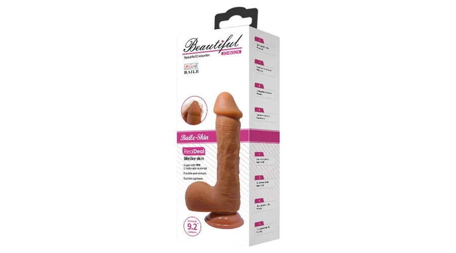 Kiváló minőségű, rugalmas, pénisz formájú, testszövethez hasonló, bőrszerű tapintású anyagból készült, motor nélküli, erezett felületű, herékkel kiegészített dildó. Tapadókorongja segítségével sík felületre rögzíthető.