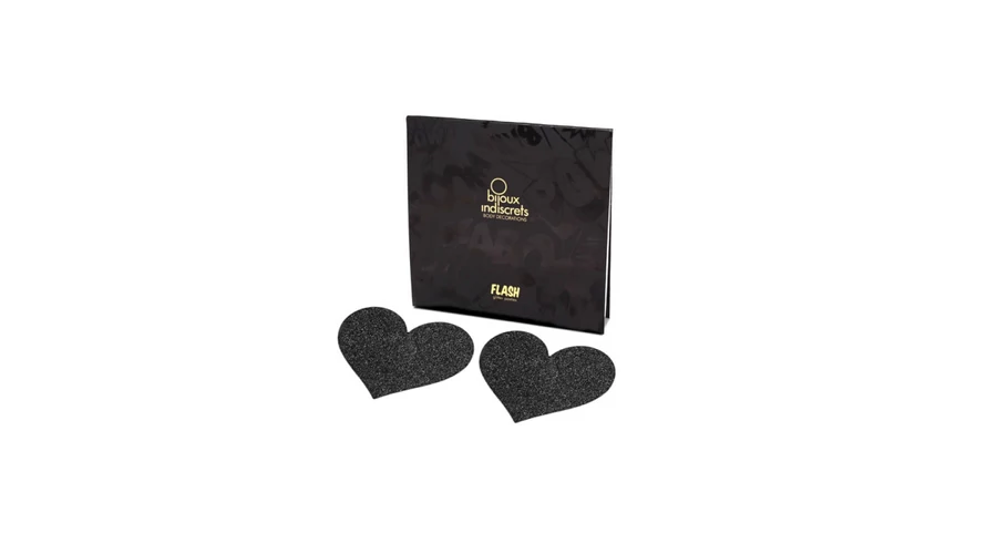 Bijoux Indiscrets Flash - csillogó szív mellbimbómatrica (fekete)