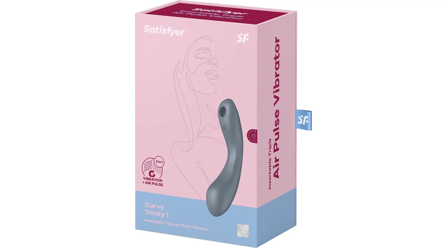 A Satisfyer Curvy Trinity 1 csábító íveivel háromféleképpen elégíti ki az Ön vágyait. A 3 az 1-ben vibrátor egy G-pont vibrátor, felhelyezős vibrátor és nyomáshullám vibrátor egyben. Elegánsan ívelt formája többféle felhasználást tesz lehetővé: Helyezze a vibrátort a csiklójára, és élvezze az izgalmas rezgéseket, vagy élvezze az Air Pulse technológia stimuláló nyomáshullámait. Mindegy, hogy a 2 külön vezérelhető funkciót külön-külön vagy együtt kívánja használni – a Curvy Trinity 1 ezt lehetővé teszi. Ha inkább mély, intenzívebb élvezetekre vágyik, masszírozza belső örömpontját a Satisfyer Curvy Trinity 1 eszközzel. Az érzéki formájú, lekerekített nyél odaadóan gondoskodik G-pontjáról. A 12 egymással kombinálható vibrációs és 11 nyomáshullám program csúcskategóriás erotikus multifunkciós eszközzé teszik ezt a vibrátort.