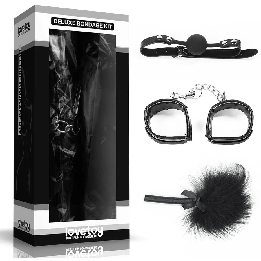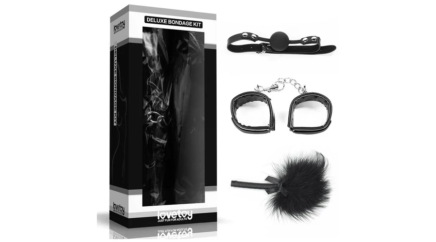 Deluxe Bondage Kit Black kötöző szett cirógatóval