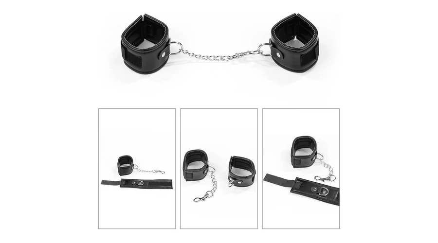 A szett tartalma : bilincs, szájpöcök, cirógató.