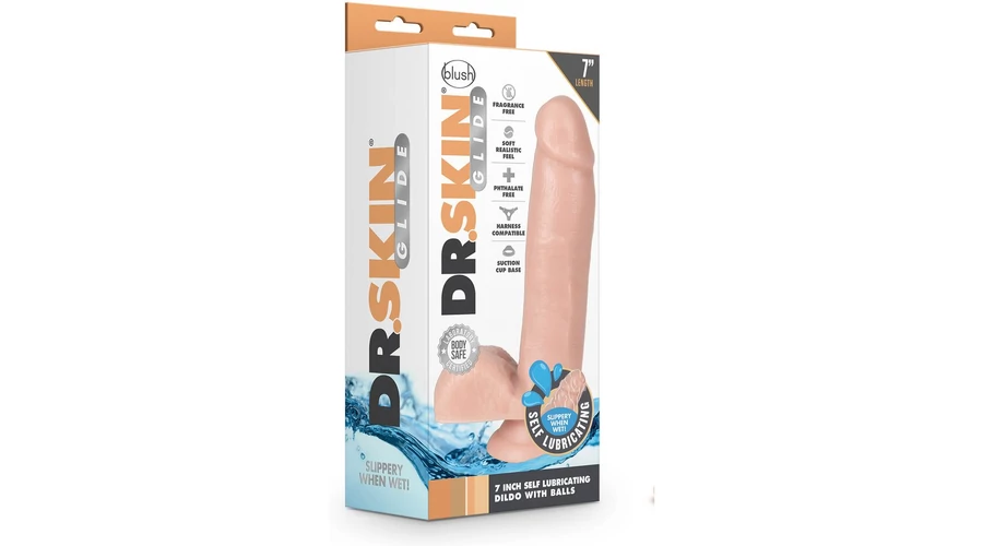 DR. SKIN 7INCH SELF LUBRICATING önsíkosító dildó herékkel