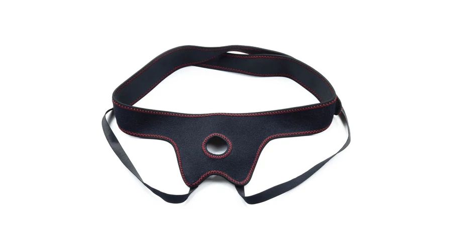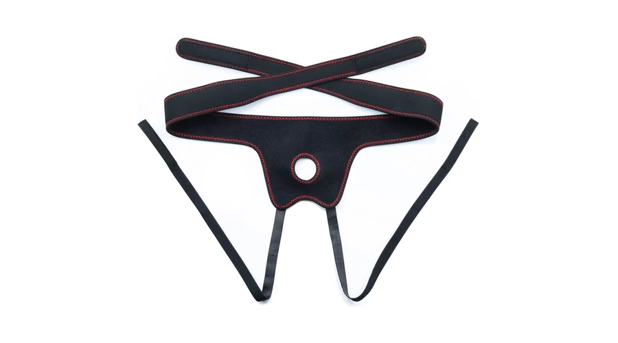 Felcsatolható termékek használatára kialakított univerzális, 61 és 142 cm derékbőségig méretre állítható hám, 3,8 cm átmérőjű szilikon O gyűrűrvel.
