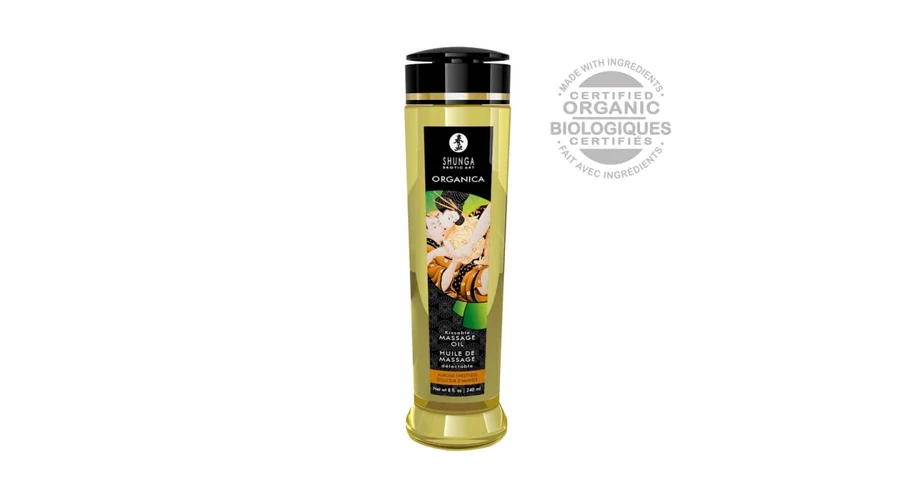 Ez a 100% természetes olajokból álló, mámorítóan illatos masszázsolaj könnyen és gyengéden csúszik a bőrön és nem hagy hátra olajfoltokat.