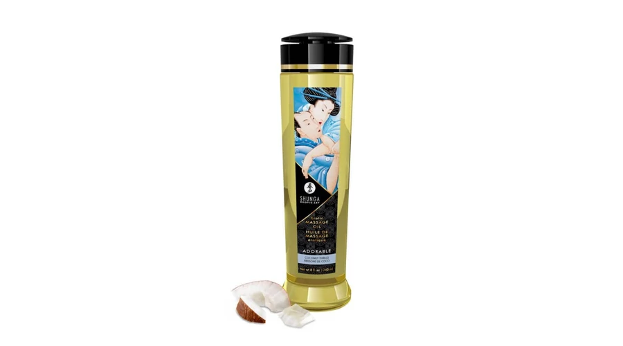 Élvezze az érzéki erotikus masszázsok örömét ezzzel a többek között mandulaolajból, szőlőolajból, E-vitaminból, illóolajból, napraforgóolajból készített exkluzív keverékkel. hidegen sajtolt olaj keverékével, kókusz illattal. Ezeket az olajokat gondosan választották ki stimuláló és energizáló tulajdonságaik miatt.